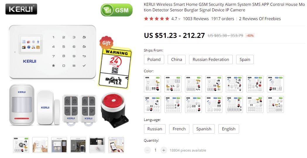 On AliExpress, you can find all kinds of security systems in different price ranges.