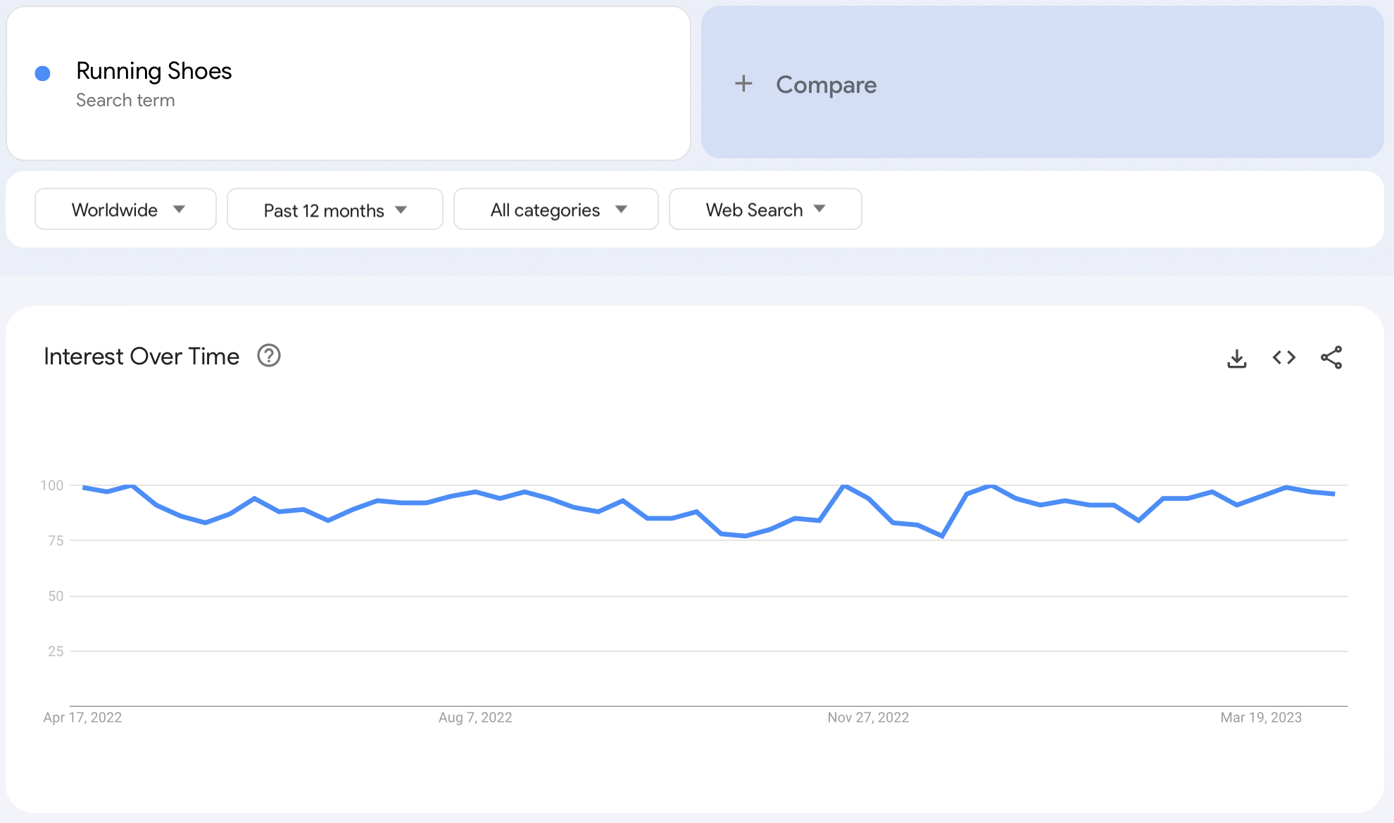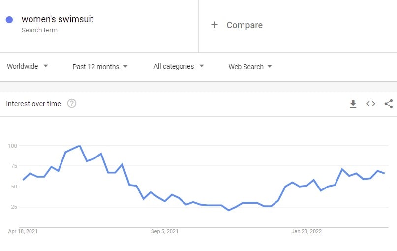 This is a prime example of a seasonal product. The interest in it is extremely high at the beginning of summer. Meantime, it doesn’t draw much attention in fall and winter (and this is logical).