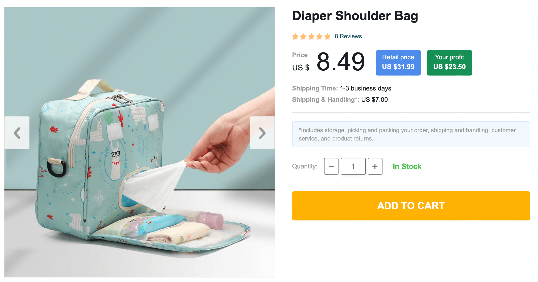 Does it seem impressive to you? All the vital product page elements (titles, descriptions, images) look clean and professional, with no mention of AliExpress, and even a recommended price is given! Surely, importing such products, you save yourself a lot of time – and you can safely spend it on more important customer-oriented business tasks that can’t be automated.