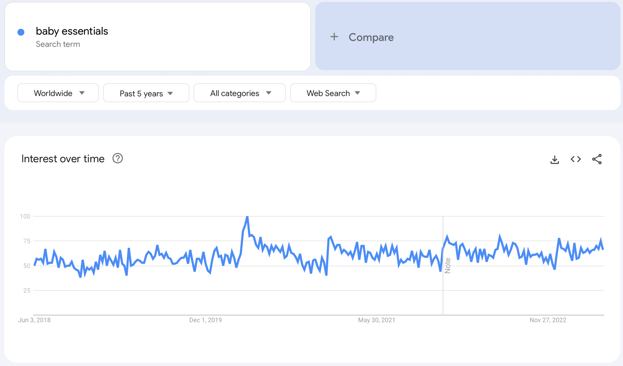 Just check out this steady growth of interest in baby essentials: clearly, that’s a promising market for you to tap into.