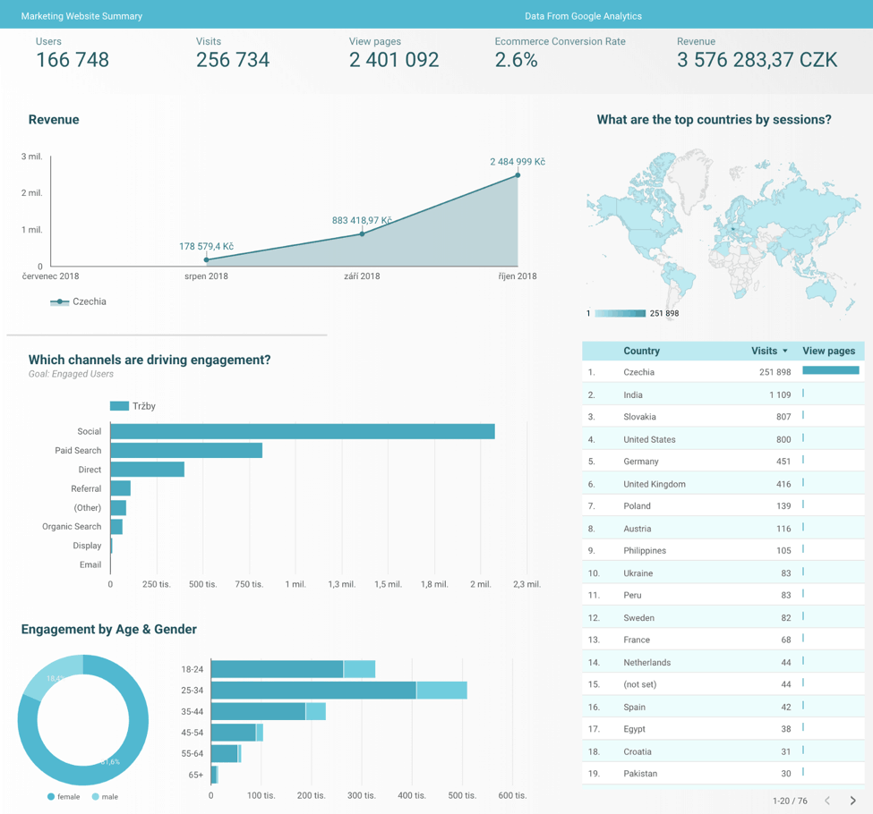 The report from Google Data Studio also shows another metrics you could be interested in. There is small difference between revenue in Google Analytics and dashboard in WooCommerce because Google Analytics data a bit fragmentary.