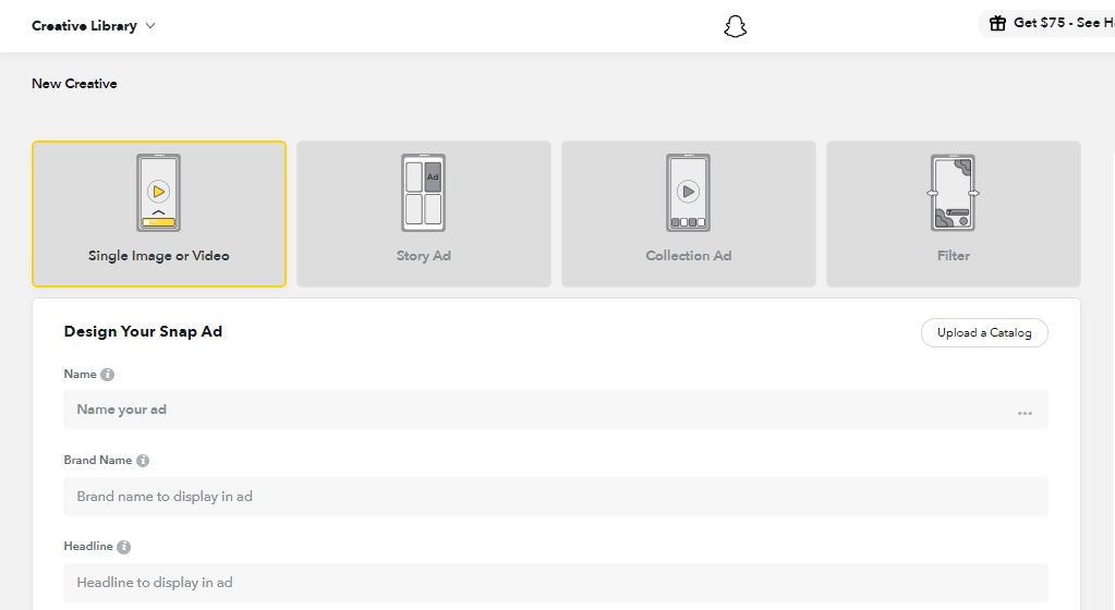 After that, you are to create one of four Snapchat ads types.