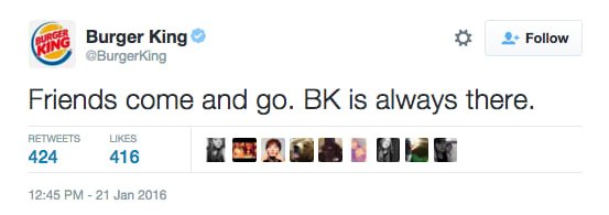 Twitter is all about connection: even if you don’t know the original posters personally, it is totally acceptable to participate in the dialogue they have initiated. This is how you build your reputation as a charismatic, sociable, and customer-friendly brand.