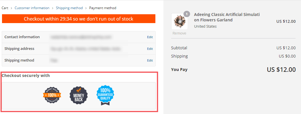 The solution that we offer in the Urgency add-on is to show greatly valued trust badges to the buyers who made it to the payment page.