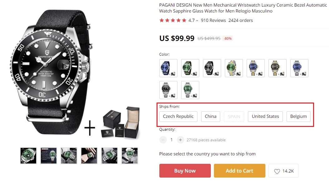 The good news is, you can repeat the same trick with any other country you need. Some AliExpress sellers have their warehouses in various countries like the one in the pictures below.
