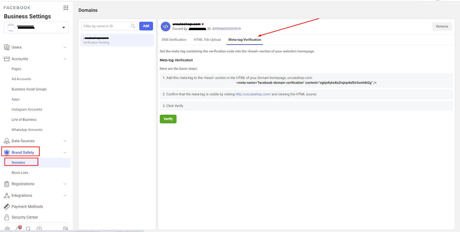 Verify your domain with Facebook