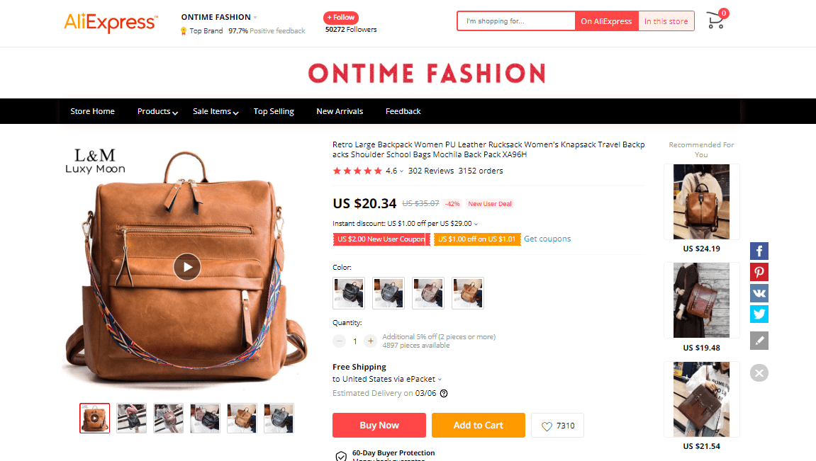 AliExpress find: price – $20.34, rating – 4.6*, number of orders – 3156