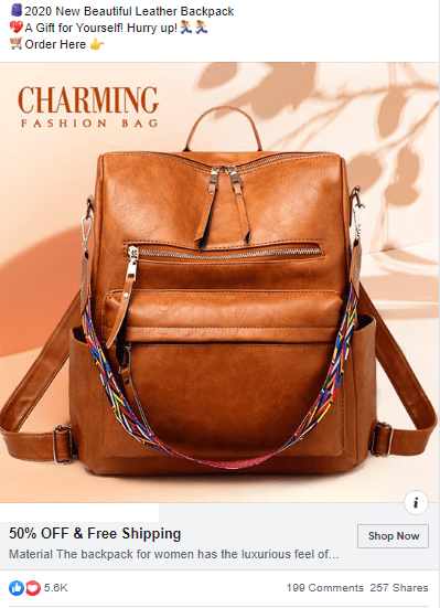 Ad stats: 5.6K likes, 199 comments, 257 shares