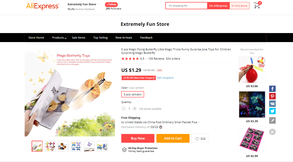 AliExpress find: price – $1.29, rating – 4.6*, number of orders – 532