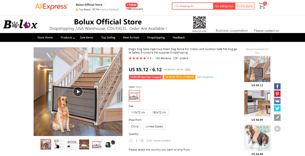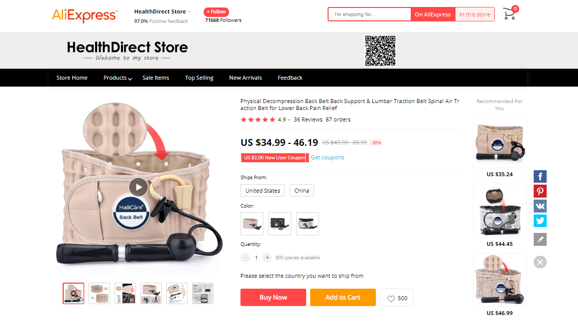 AliExpress find: price – $34.99-46.19, rating – 4.9*, number of orders – 87