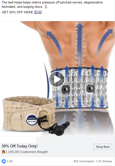 Ad stats: 2.4K likes, 403 comments, 1.3K shares