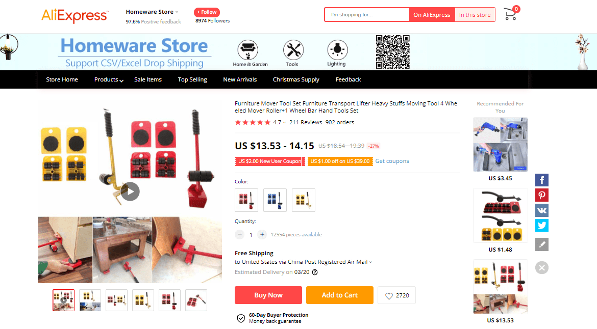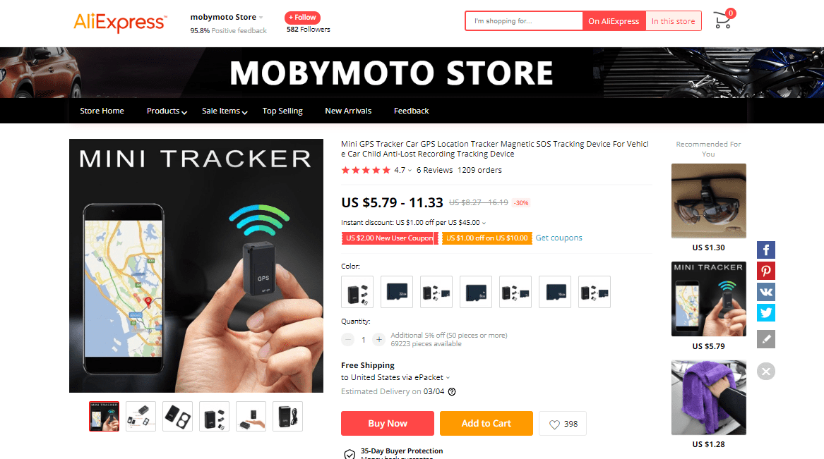 AliExpress find: price – $5.79-11.33, rating – 4.4*, number of orders – 1234