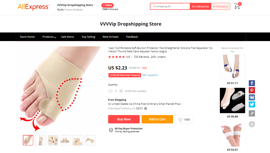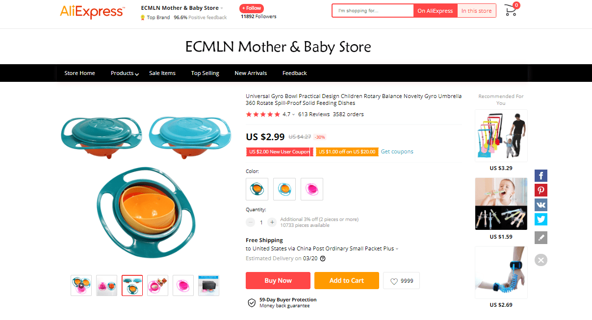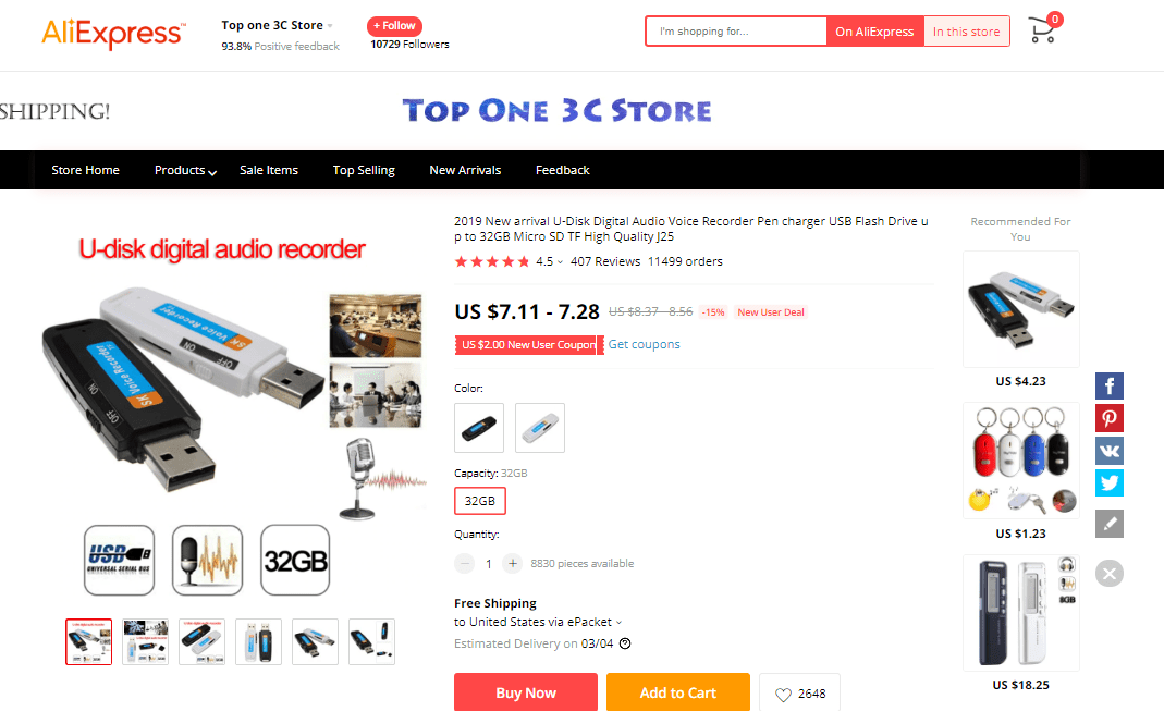 AliExpress find: price – $7.11, rating – 4.5*, number of orders – 11566