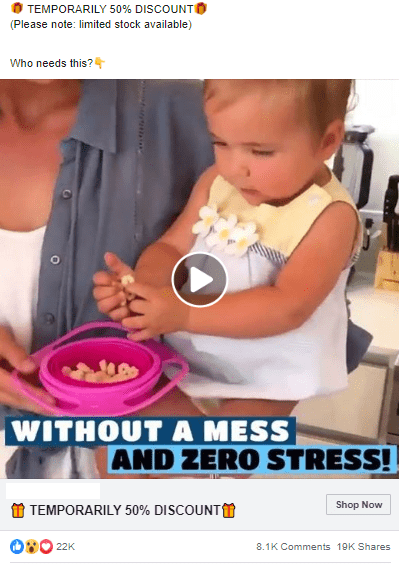 Ad stats: 22K likes, 8.1K comments, 19K shares