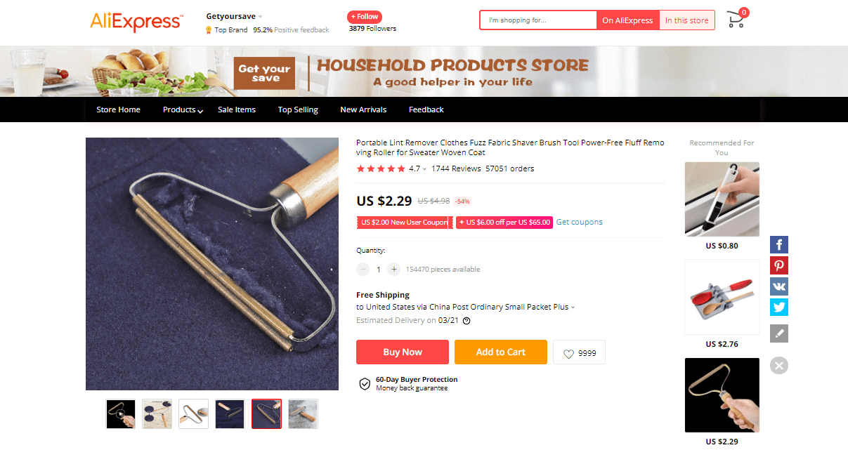 AliExpress find: price – $5.68, rating – 4.7*, number of orders – 878