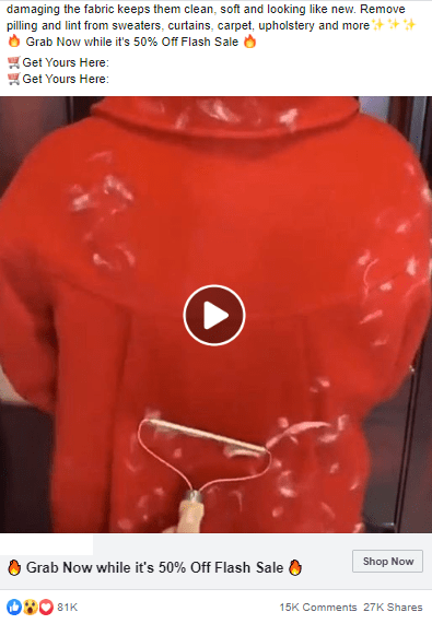 Ad stats: 81K likes,15K comments, 27K shares
