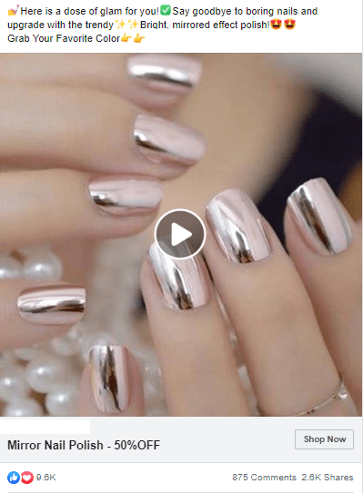 Ad stats: 9.6K likes, 875 comments, 2.6K shares