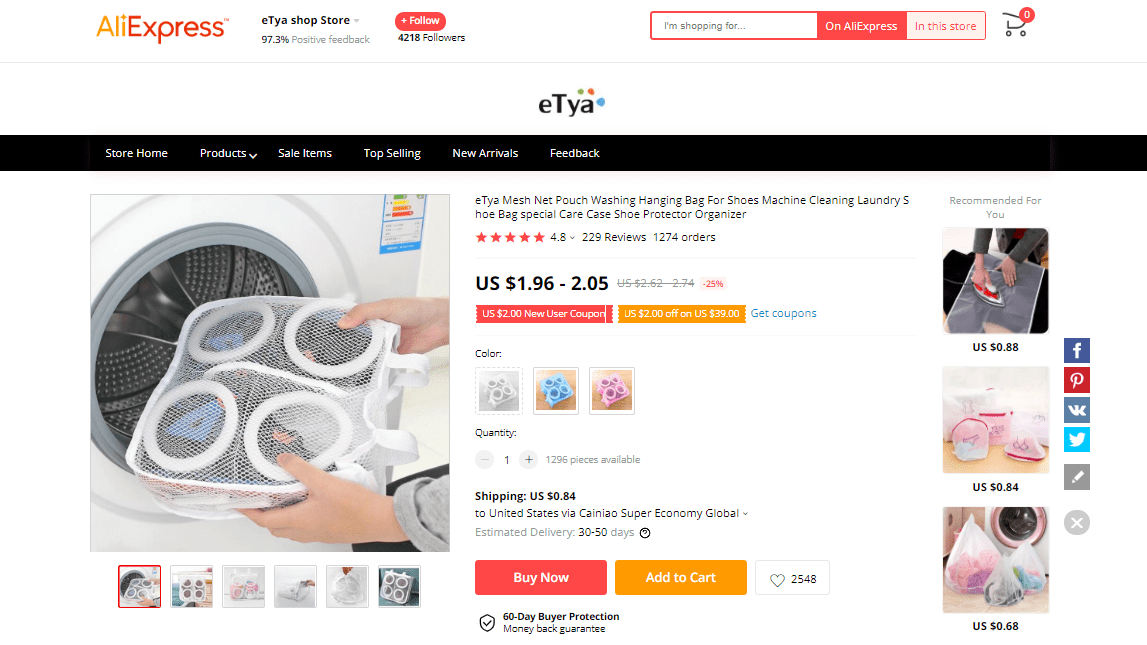 AliExpress find: price – $1.78-1.98, rating – 4.5*, number of orders – 3707