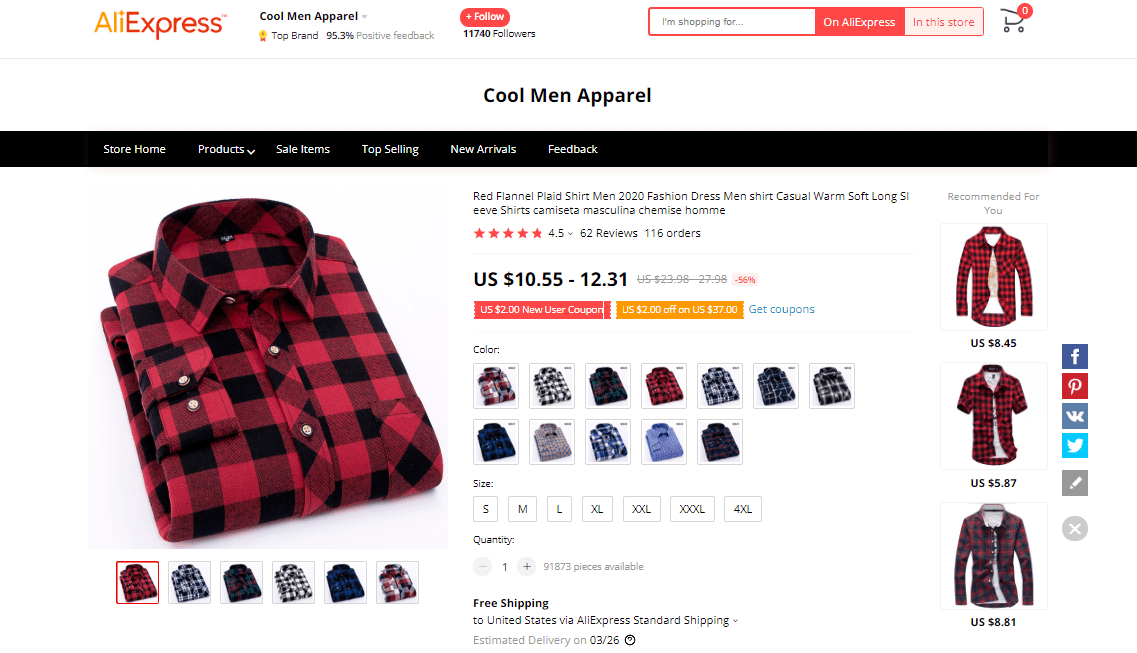 AliExpress find: price – $10.55-12.31, rating – 4.5*, number of orders – 116