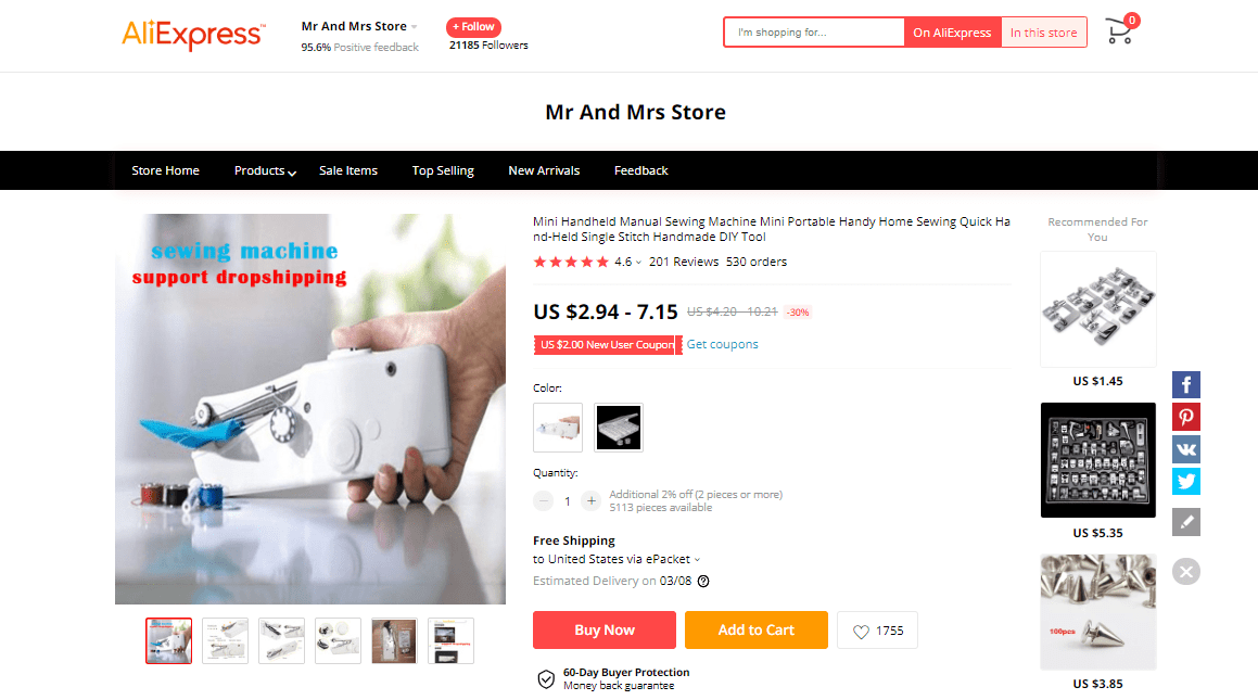 AliExpress find: price – $1.96-2.05, rating – 4.8*, number of orders – 1267