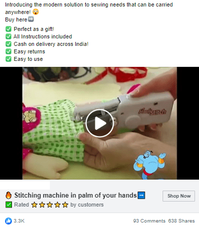 Ad stats: 3.3K likes, 93 comments, 638 shares