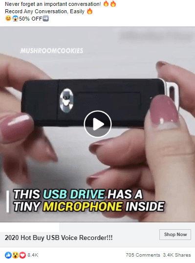 Ad stats: 8.4K likes, 705 comments, 3.4K shares
