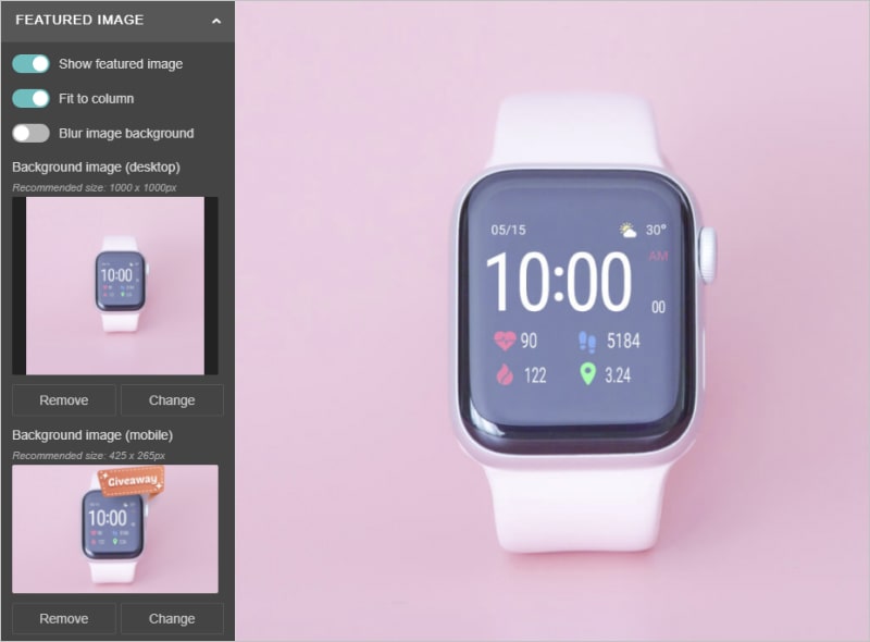 No matter what goal your landing page works towards, it should include attention-grabbing visuals. Fixed when you scroll the page, the large featured image plays a crucial role as it reflects the mood and feel of the page. The front-end builder offers a number of customization options for your featured image. Make sure to check them out in this detailed setup guide.
