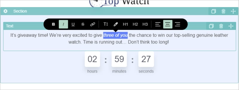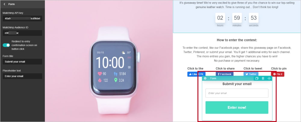 Start off by revealing the contest details. Add a compelling copy where you state clearly when the contest ends, how to enter, and how many prizes are being given away.