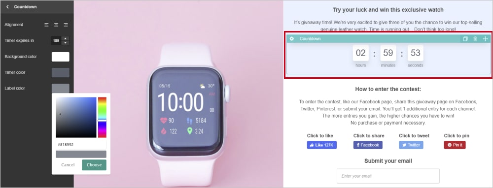 A countdown timer is a must on each and every contest page. People tend to procrastinate when they feel they are not limited by time. To create urgency and get people to act fast, give an added visual trigger.