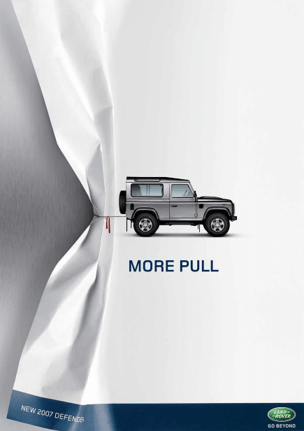 For example, in one of their campaigns, Land Rover focused on one feature and used a super strong visual to create an attention-grabbing, clever and smart ad.