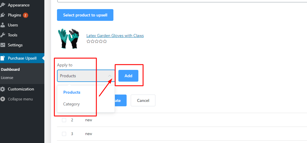 After that, you can choose either to apply the upsell to a certain category or to certain products.