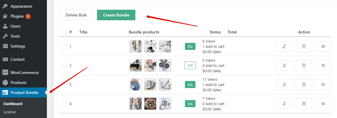 Lastly, the Product Bundle add-on menu allows you to monitor the statistics such as how many times a bundle was viewed, added to cart and how many sales you made.