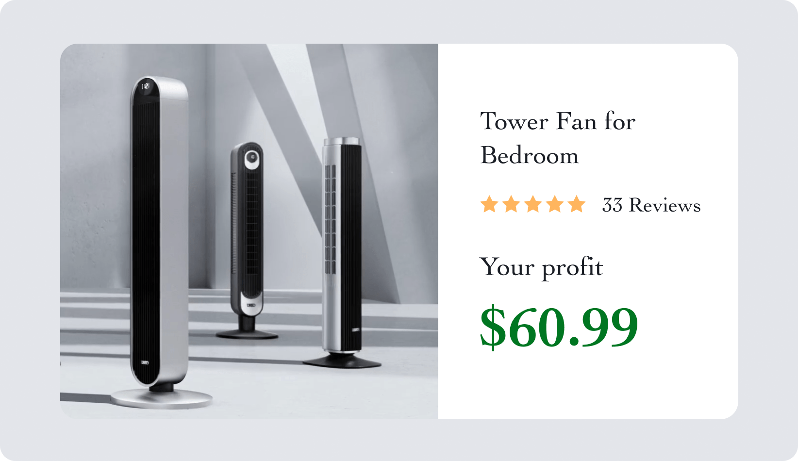 Offer a sleek tower fan to keep customers cool. Its quiet operation and strong airflow make it popular for enhancing home comfort.