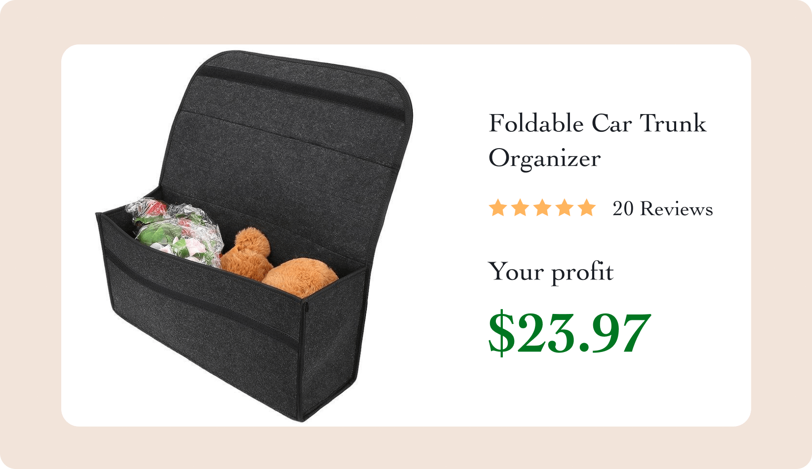 Help customers stay organized with this foldable trunk organizer. It’s ideal for managing space and keeping items secure, appealing to travelers and families.