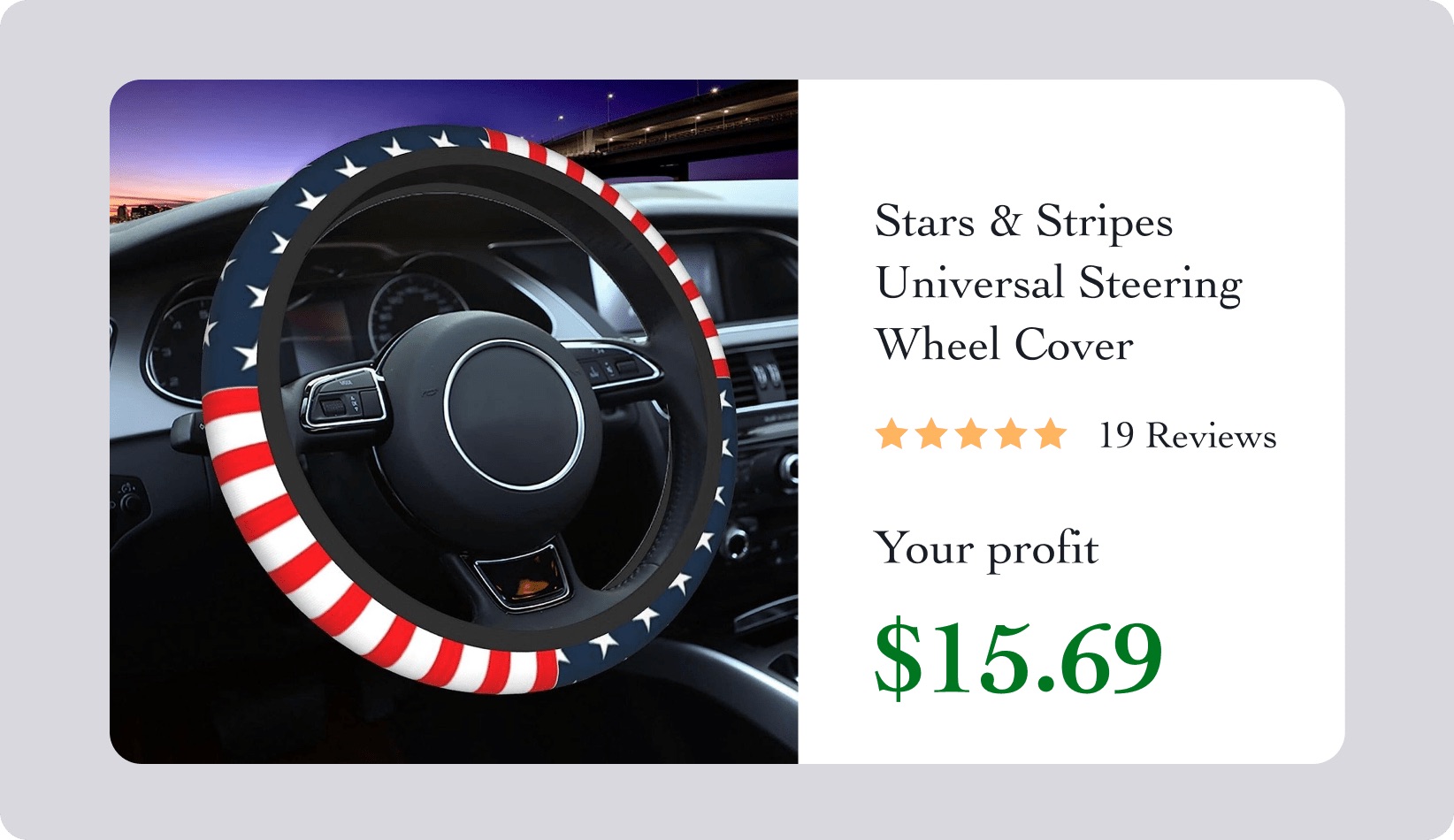 Add a patriotic touch with this steering wheel cover. It fits any vehicle and appeals to patriotic drivers.