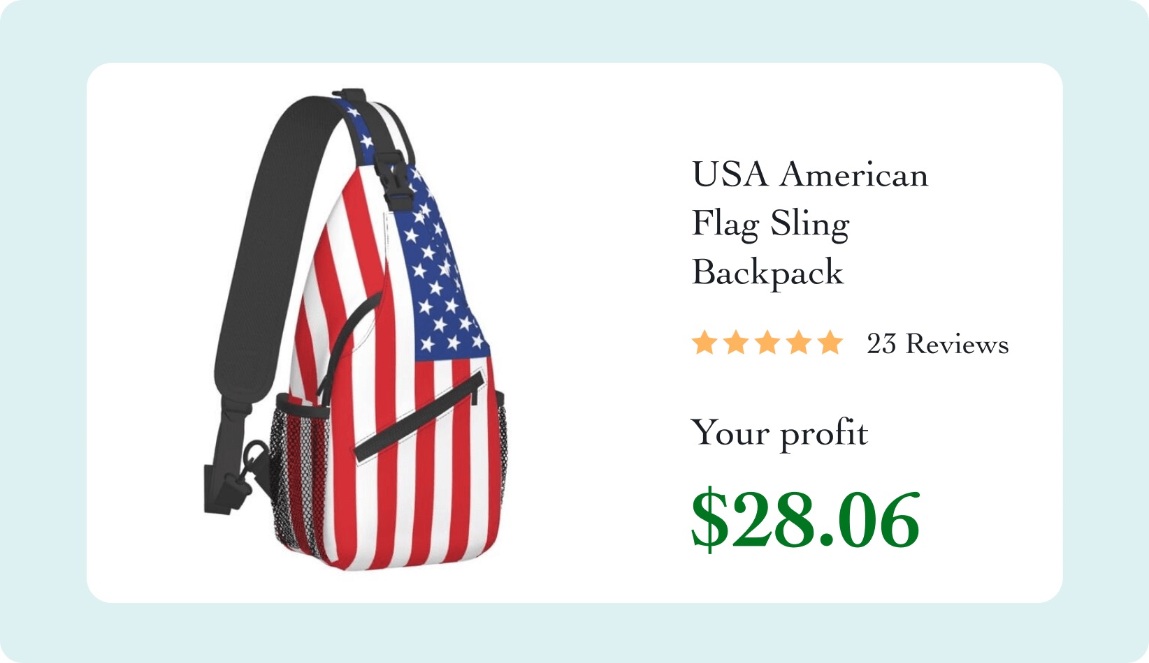 Expand your bag collection with this practical sling backpack. It’s adorned with the American flag, ideal for showing patriotism on the go.