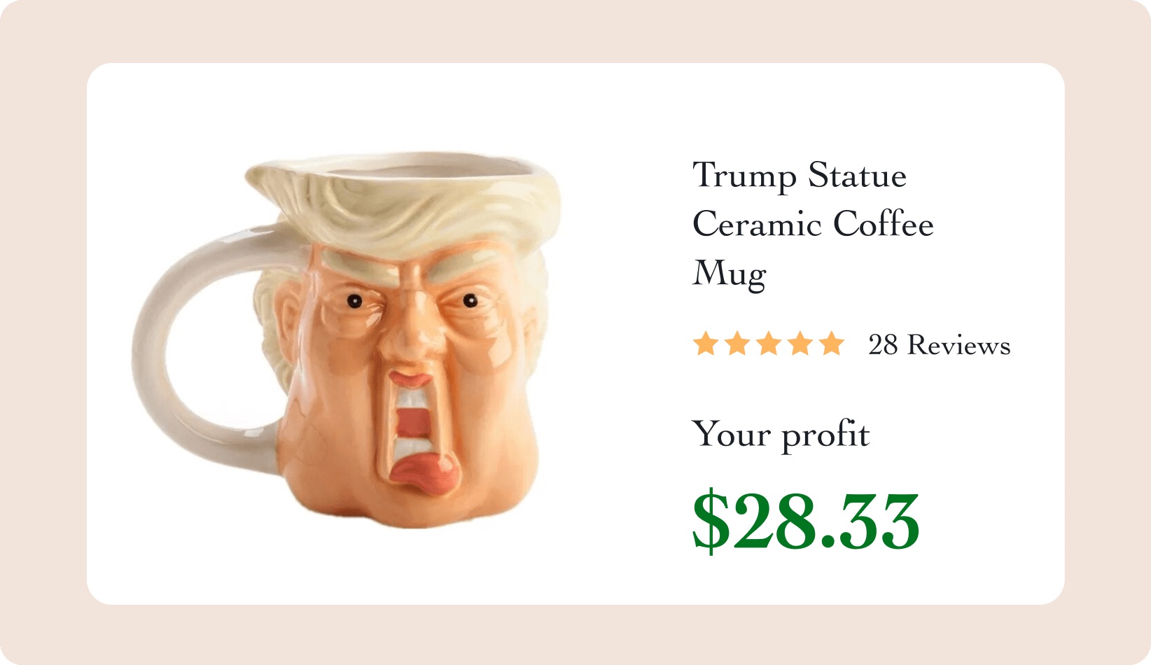Offer a unique item with this Trump statue coffee mug. It’s great for collectors and those interested in political memorabilia.