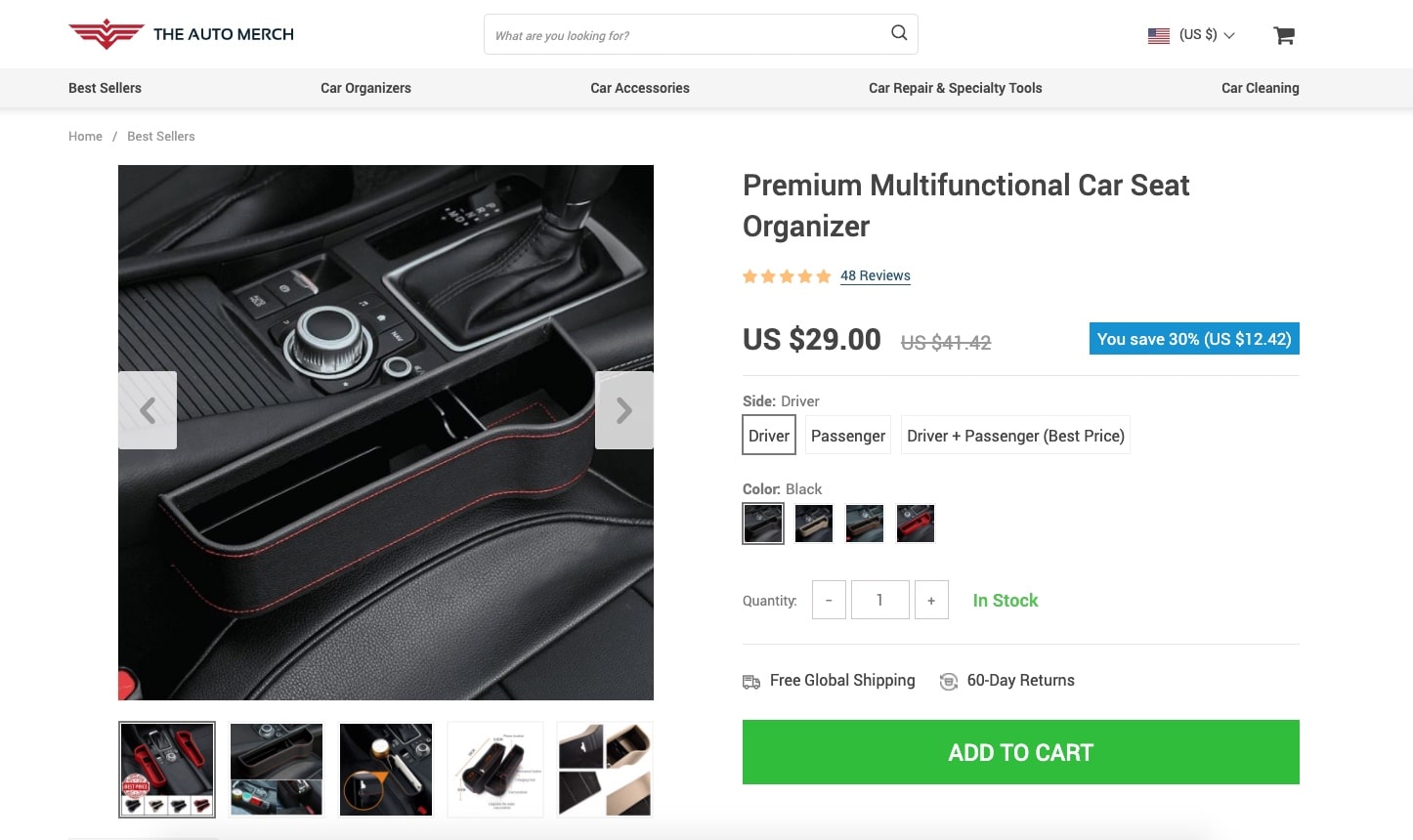 Definitely, when promoting your online store, you don’t need to advertise all the products you sell. You should focus on advertising a limited number of products that seem to be the most promising. When our managers were considering how to promote a store, they decided to focus on products that can solve drivers’ most burning issues. One of such products is this car seat organizer.