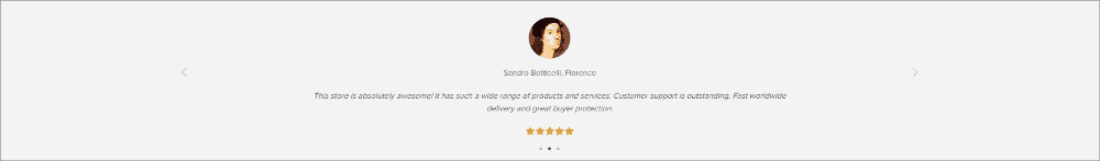 – A testimonials block that is also featured on the Home page and includes the real-life customer reviews proving your store credibility.