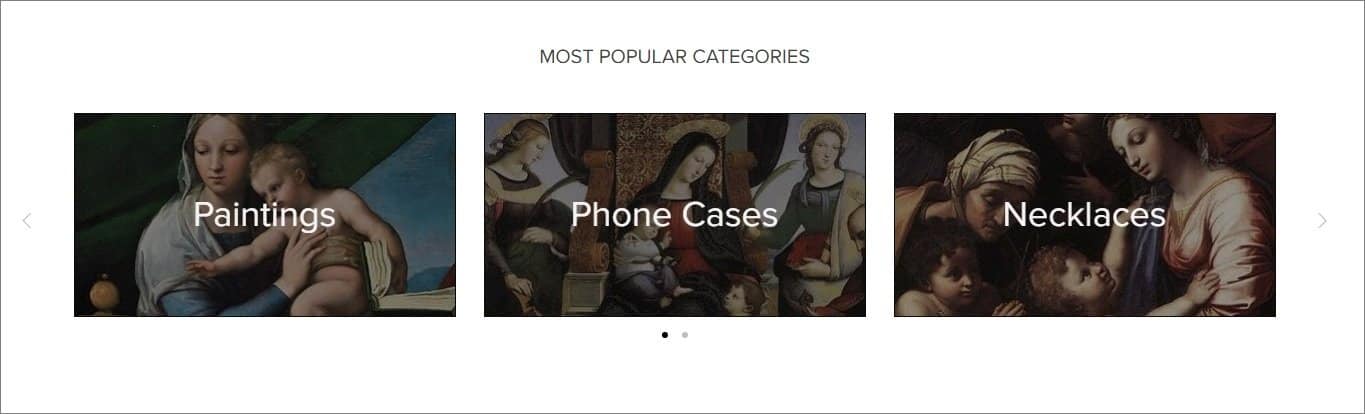 – Titular images that illustrate the categories and let the users easily learn what products are included in these sections.