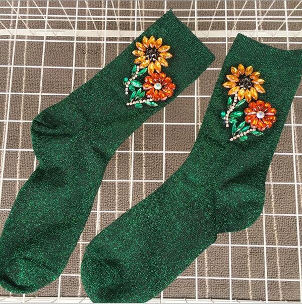 Embroidered glitter socks