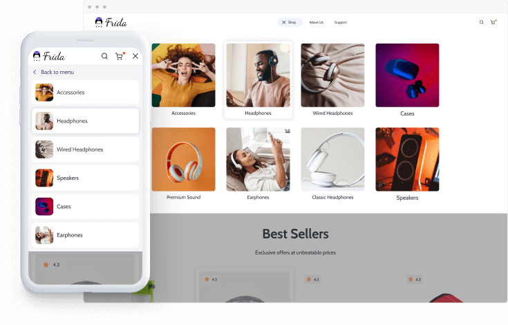 That’s exactly why Frida has no built-in submenu, for example! With small inventory stores, it would complicate the navigation through the store and distract your customers from the main reason they visit your website: to buy the product they’re looking for. And Frida is all about capturing and focusing your visitors’ attention to make the buying process absolutely natural and seamless!