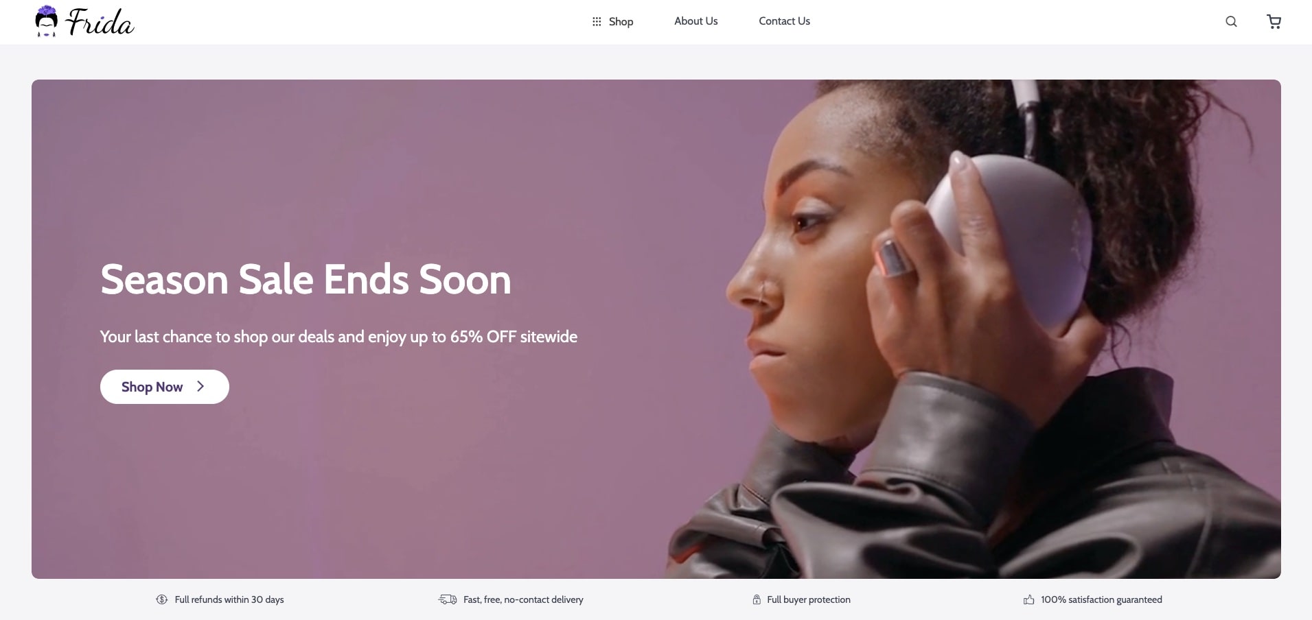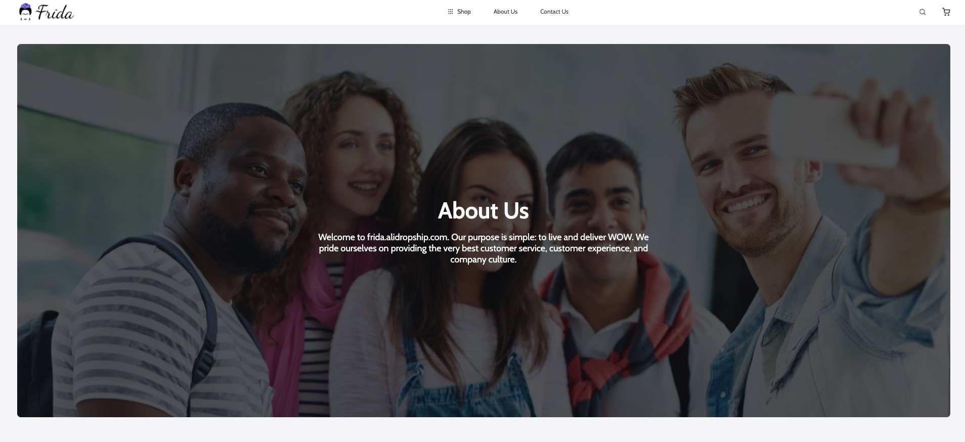 With Frida, you’re able to provide your store with an About Us page to help you introduce your team on your own terms. This is a great opportunity to share your values, tell a story behind your goods and show who creates them. Thus, you get another chance to build trust and сreate a strong bond with your customers.