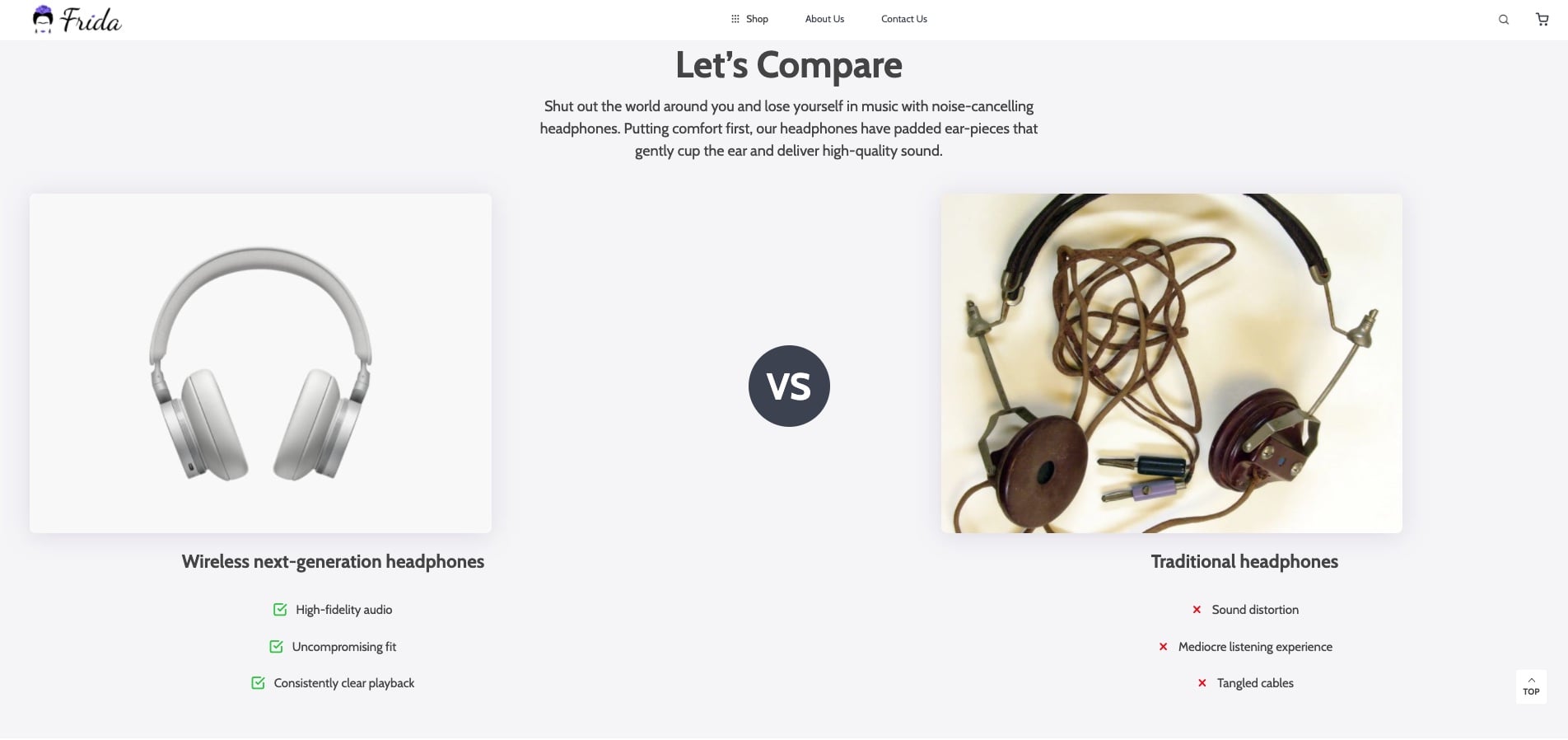 If you want to bond with your customers a bit more, Frida is glad to offer an option of product comparison. This clean and easy-on-the-eyes section will help highlight your product features by comparing them with what your opponents offer on the market. Here’s one more space where you can put a product in the spotlight — just find the right words.