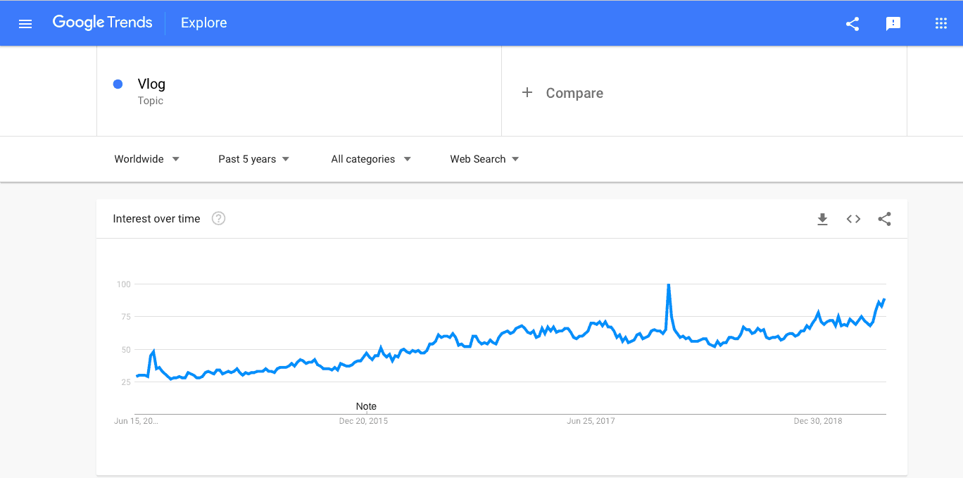 As you can see, the search interest for video blogging is growing at an overwhelming speed. It means people are interested in this activity and, as a result, in video blogging equipment that is necessary to create vlogs.