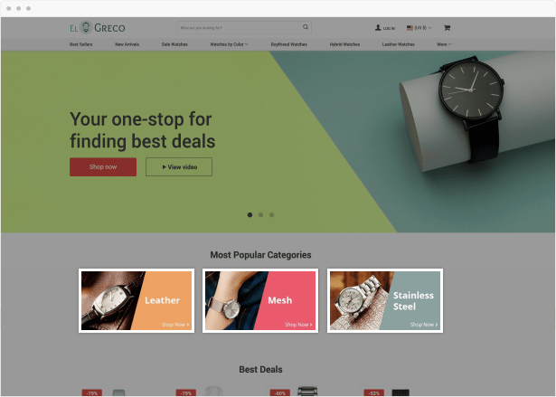 Getting customers to the checkout has never been so easy! With a sleek and fully-responsive layout, El Greco is a pure pleasure to browse. It terrifically handles any niche and catalog so your customers can enjoy all the comfort and convenience of online shopping. The theme comes with TWO versions of checkout!