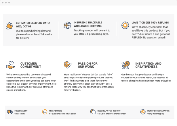 The theme has plenty of built-in eCommerce trust drivers that will bring in the profits with no effort made on your end. Encourage massive engagement with your brand and entice your visitors to make a purchase right now.