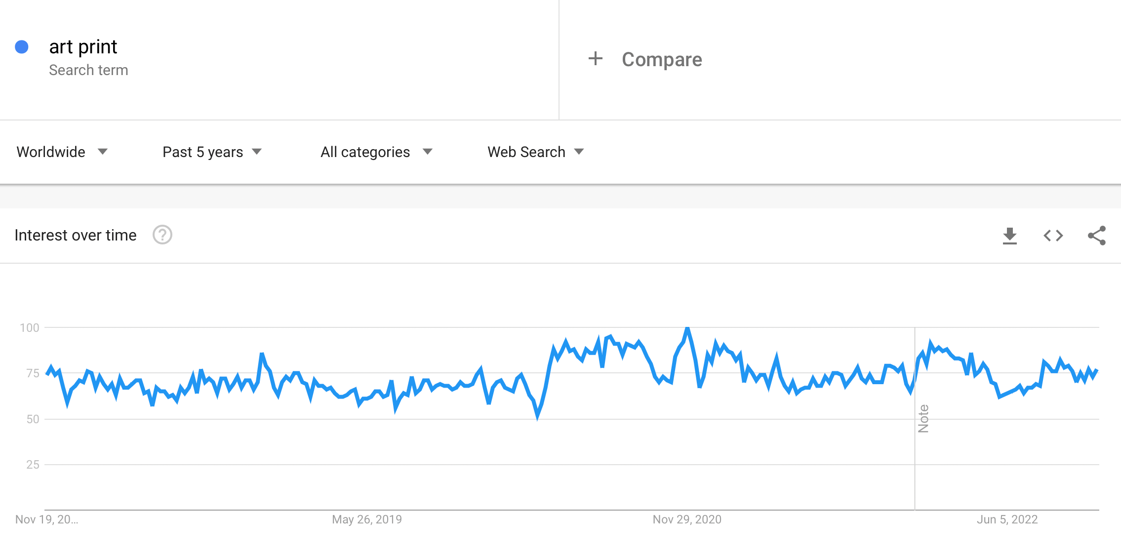 If we look at Google Trends, we can clearly see that art is a widely popular search query worldwide. And throughout the past five years, the interest has been consistent with no significant seasonal changes.